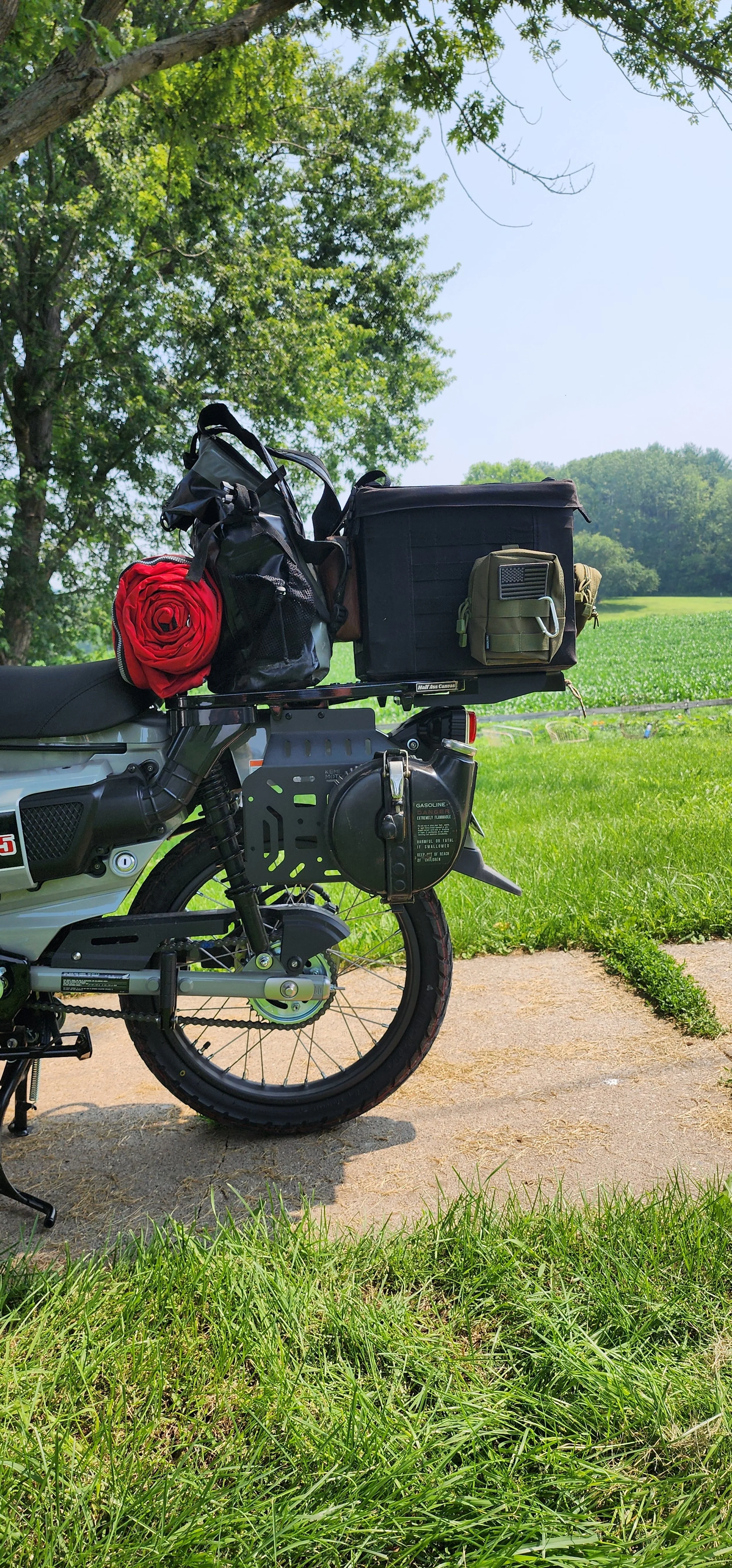 * MOLLE Strapping System: Use our “Moto Milk Crate” bags or any other pouch or attachment that has the MOLLE/PALS mounting system.